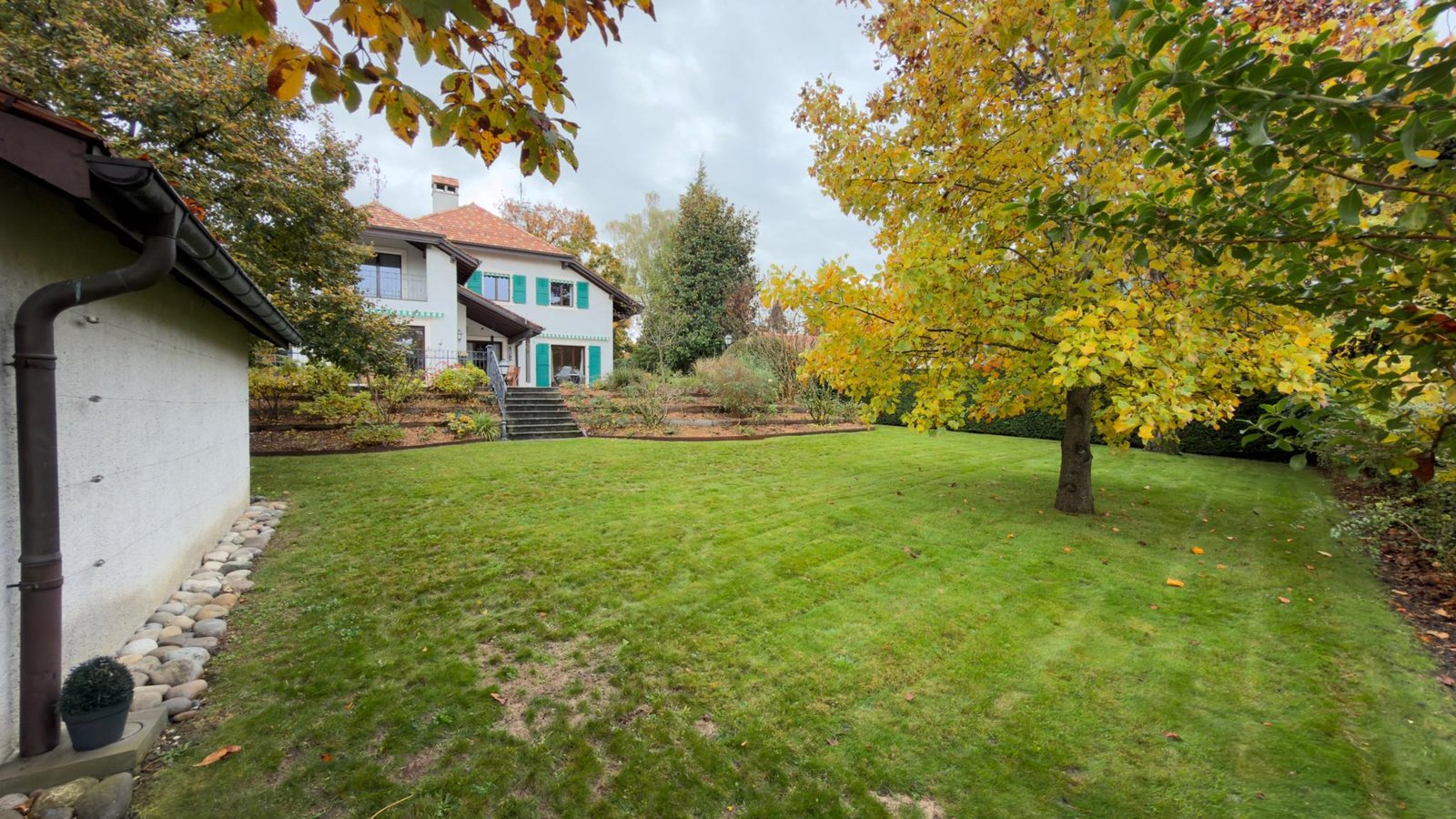 Édifiée sur une superbe parcelle arborée d’environ 1’300 m², cette demeure d’environ 526 m² utiles séduit par ses volumes harmonieux, sa luminosité et la qualité de son entretien.